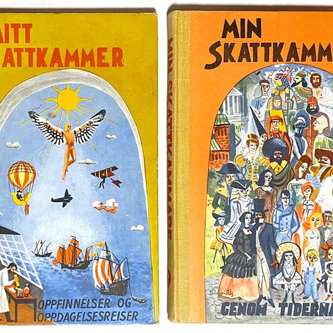 Mitt Skattkammer bokserie bestående av flere bind med ulike illustrasjoner på omslaget. med varierende farger og motiv på permer. Selges kr. 200,-
