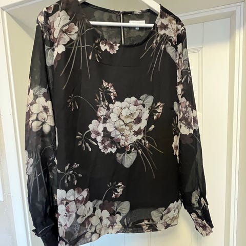Lett og luftig kvalitet med pen drapert utringning og elastisk linning nederst og på ermene.