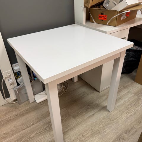 Sort bordplate på IKEA kjøkkenbordet. AVLASTNINGSBORD (IKKE IKEA) 80x80 og høyde 75..Brun bordplate og med metallben med justerbar fot for høyde. Begge bord gis bort gratis pga. plassmangel. Sendes ikke! Må hentes! Bor i Oslo. Jeg kan demontere benene så det blir letter å frakte med seg. Første mann til mølla.....