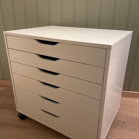 Hvit skuffseksjon til salgs. Passer feks fint på hjemmekontoret. To små bruksmerker på toppen. Må hentes i Arendal.