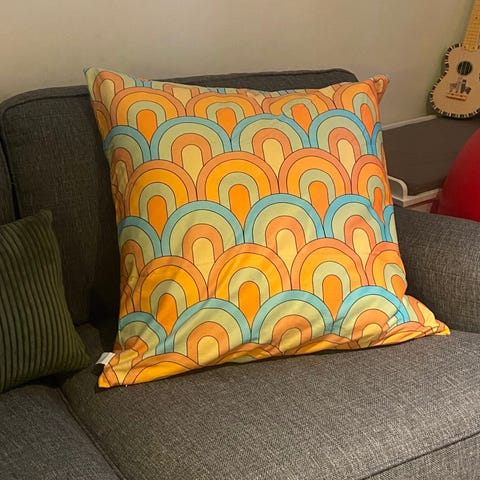 Retro putetrekk selges, målene er målt utfra putestørrelse, er en 5 cm pyntekant utenfor der på 3 av sidene.