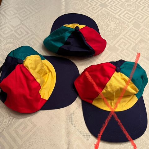 Sett bestående av en stripete skjorte i brunfarger med knapper foran og lange ermer, samt to caps i stripete mønster i brun og rød farge. Selges under ett!