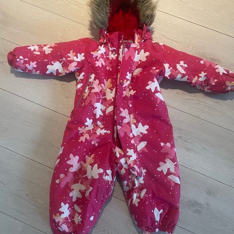 Utrolig søt vinterdress i str 80 fra Reima. God og varm. Den er pent brukt, men noen bruksmerker kan forkomme. Hele fotstrikk. Kan hentes på Tiller eller sendes mot at kjøper betaler porto.
