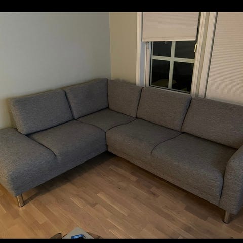 Selger vår hjørnesofa da rommet skal brukes til noe annet. Meget pent brukt. Kan deles i to for transport. Kan være behjelpelig med transport hvis vi blir enige om pris, men bæring må tas selv.