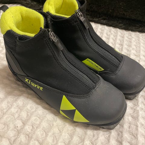 Fischer XJ Sprint skisko i størrelse 34. Skoen har syntetisk overmateriale og såle, med tekstilfôr. Fargene er svart og gul.