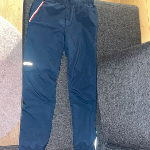Selger pent brukt langrennsbukse fra Norheim str S. Snøring i livet og glidelåser nederst på beina. Et lite hull bak på venstre bein langt nede, se bilde. Ellers i god stand.