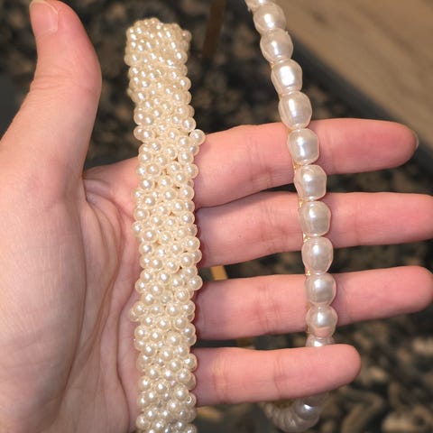 1 vakker hvit hårbånd med elegante perler og lange satengbånd