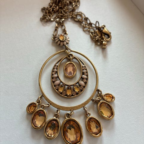 Øredobber for dame laget i andre materialer. Øredobbene har en design med klare steiner og flere kjedede ledd, noe som gir dem et dekorativt og elegant utseende.