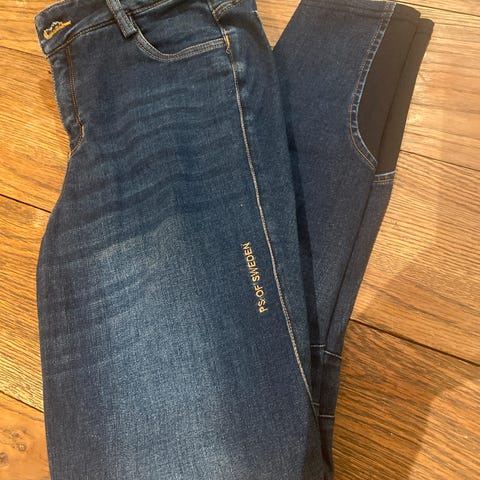Det er en pen blå ridebukse fra piece of Sweden. Ridebuksen har et hull men det er bare å sy igjen vis ønsket. Størrelse xs.