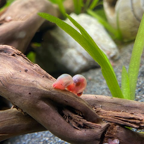 Pene rosa akvariumssnegler som er med på å holde tanken ren. De er veldig gode på algebekjempelse, og de spiser ikke planter. Fôr som ellers ville råtnet på bunnen av tanken vil de også spise.