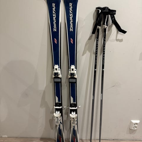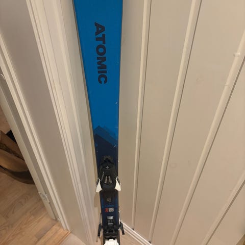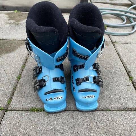 Head Team alpinski lengde 107cm med tilhørende blå Lange støvler i størrelse ca 31 (19,5alpinstr) Skiene har bindinger og er egnet for alpint bruk. Støvlene er laget i plastmateriale med justerbare spenner for god passform.