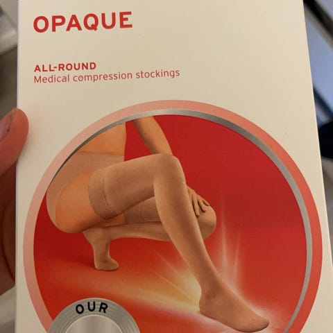 Medi mediven Thrombexin 18 kompresjonsstrømper i hvit farge. Strømpene er laget for medisinsk bruk med kompresjonsklasse 18. Produktet leveres i original emballasje.