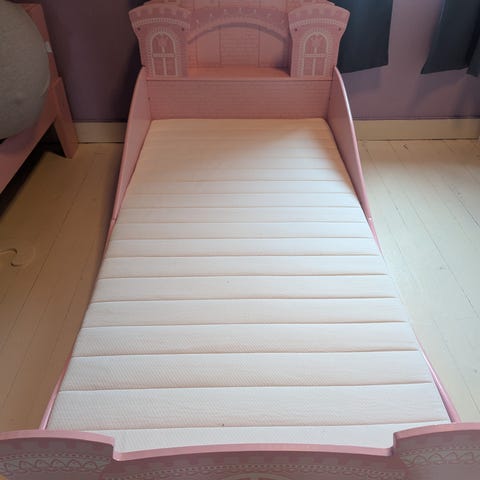 Babybay juniorseng med Disney prinsessemotiv. Sengen har rosa farge og er tilpasset barn. Den har dekorative sider med prinsessebilder og en enkel madrassløsning. Madrassen følger med om ønskelig. For mer info ring 46744077.