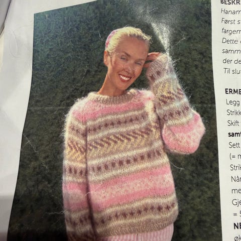 Strikkeoppskrift genser, selges 40 kr
