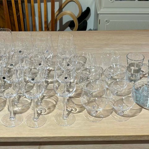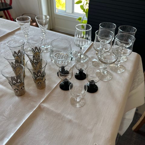 Mange ulike glass selges, samlet pris