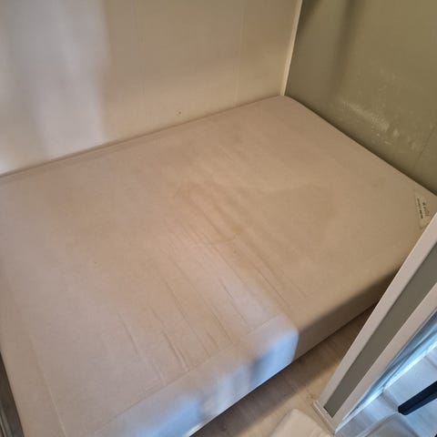 Pent brukt seng med overmadrass 5 cm avtagbar trekk med gyldelås for vasking!, 2 x 75 x 200 Skummadrass med avtagbar gyldelås trekk for vasking.