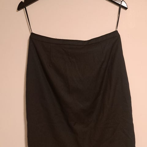 Selger et kult svart skjørt med glidelås foran og brodert emblem i livet. Stoffet er solid og har en lett struktur – passer perfekt til både hverdags og fest. Merket er G-Star.