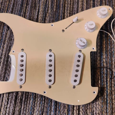Ukjent opphav, passer strat type gitarer. Plekterbrett virker å være av bra kvalitet. Resten er så som så, men funker. Kan sendes.