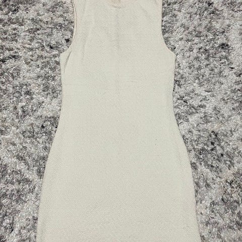 ONLY Hverdagskjole i størrelse M, fargen hvit med svart mønster. Laget av 100 % polyester. Kjolen er ermeløs og egnet for hverdagsbruk.