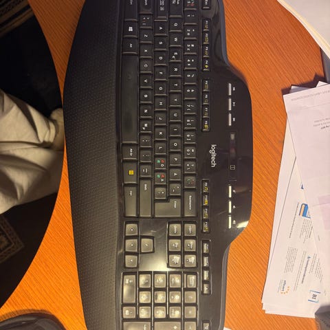 Logitech R400 trådløs presentasjonsfjernkontroll. Produktet fungerer som et tilleggsutstyr for datamaskiner, designet for å styre presentasjoner trådløst via USB-mottaker.
