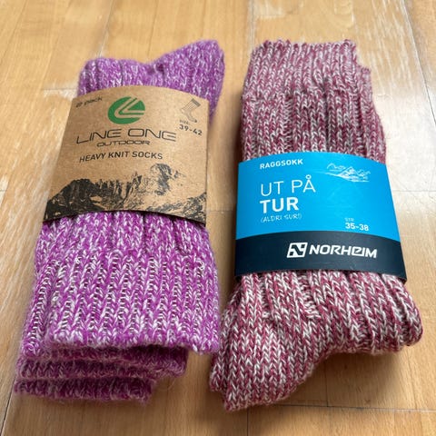 Selger 7 par med ullsokker. Noen av de er helt nye, andre kun brukt et par ganger. Str 39-42 ca. Selges samlet for 150kr.