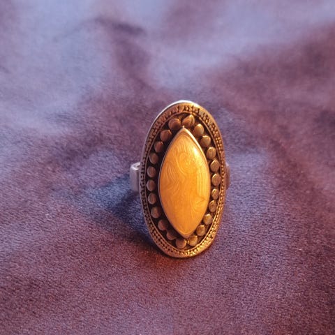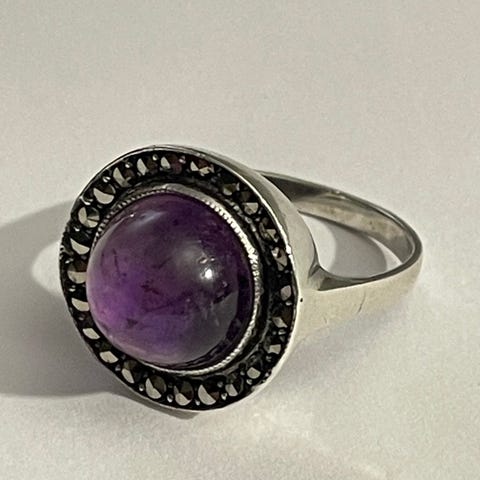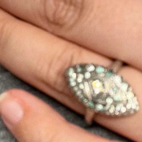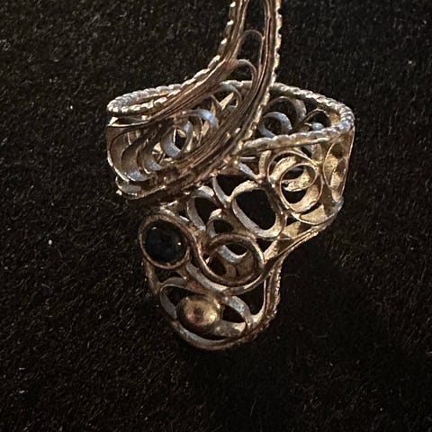Selger en liten sølv ring ( passer på min lillefinger) usikker på størrelse og usikker på om det er sten . Denne er i en gammel art deco stil .