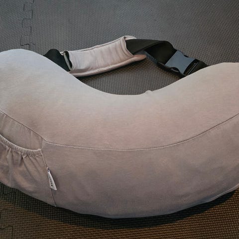 bbhugme® ammepute gir stabil og komfortabel støtte ved både amming og flaskemating. Den festes rundt livet for en ergonomisk posisjon, og reduserer belastning på nakke og skuldre. Puten er lett, justerbar og leveres med reisetrekk – perfekt både hjemme og på farten.