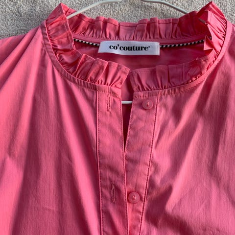 Co'couture bluse i størrelse Medium for kvinner. Blusen er laget av bomull og har en rosa farge med mønsterdetaljer.