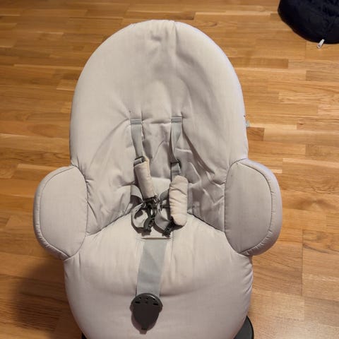 Leander stellematte i grå selges med 3stk Leander håndklær. Stellematten har et hull på siden, men det syntes ikke når man bruker håndkle.
