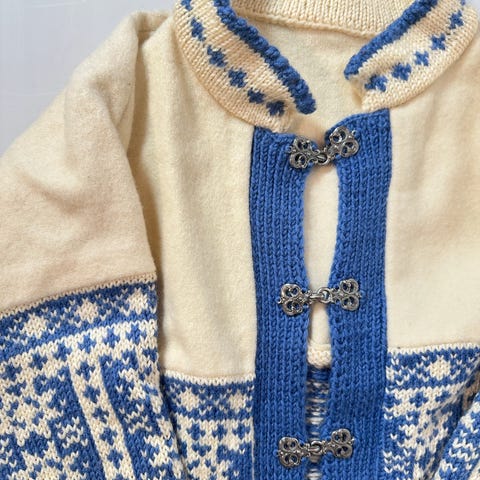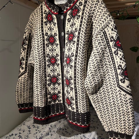 Ull-kofte til Dame, hjemmestrikket, str. L til salgs!