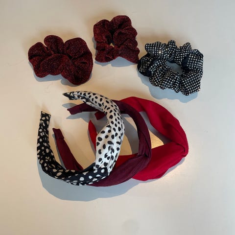 2 hårbøyler, 2 pannebånd, 3 scrunchies med sløyfe og 9 forskjellige farget scrunchies. Send melding om du vil ha alt eller bare noe, pris diskuteres. Alt for 50kr
