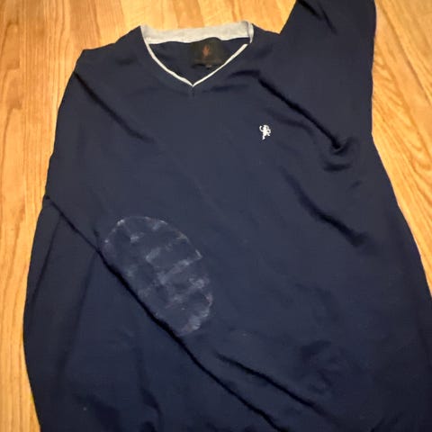 Original Penguin genser i gråmelert farge, laget av 100% merinoull. Herremodell med rund hals og ribbestrikkede detaljer.