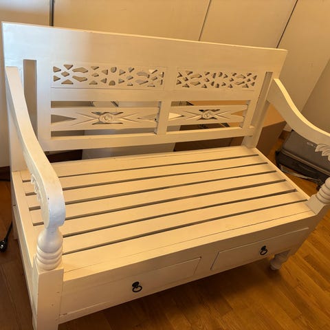 IKEA TOLKNING benk med oppbevaring, håndlaget rotting