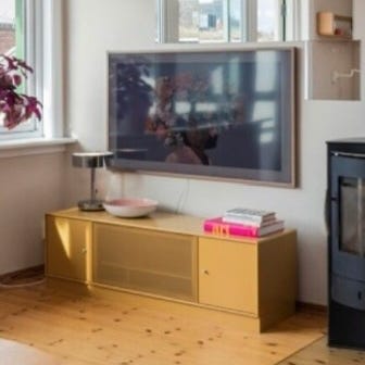 Hvit tv sjenk bestående av 3 moduler fra Montana selges. Vegghengt. Enkel montering. Seksjonen består av hylle med skap som kan lukkes og 2 kommoder med skuffer. Må hentes på Lade i Trondheim.