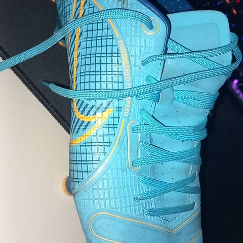Nike Phantom fotballsko i størrelse 35,5. Skoene er blå med detaljer i hvitt og grønt. . 100 kr