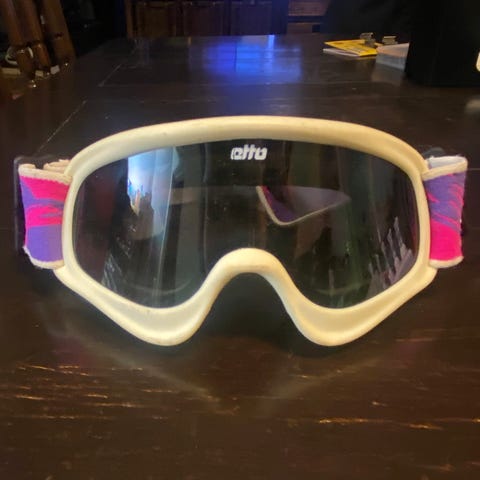 Slalåmbriller/skibriller til barn selges. Myk og behagelig skumkant som sitter godt mot ansiktet, og justerbar strikk med kult rom/astronaut-mønster 😊