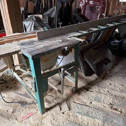 Eldre 3 fas Gjerdesag med bukk og rullebord. Ikke brukt på 5-6 år. Må hentes på 2032 etter nærmere avtale.