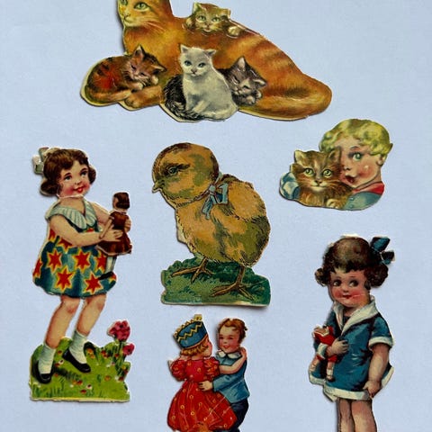 Antikk glansbilde ~ «pike med forglem meg ei»