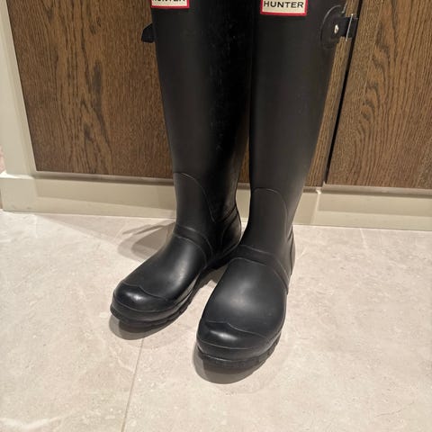Selger regnstøvler fra Stockholm Design Group, kun brukt to ganger. Støvlene er i svært god stand, uten synlige skader eller slitasje. Komfortable og stilrene, passer perfekt til regnfulle dager.