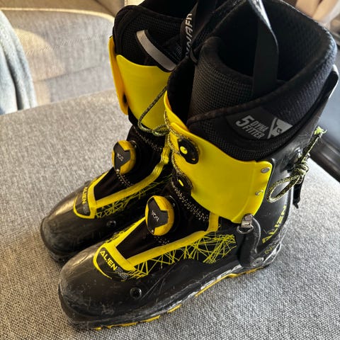 Skistøvler som kan brukes både til alpinanlegg og toppturer. Følger med tunger for bruk til begge formål. Ene er mer stiv enn den andre.