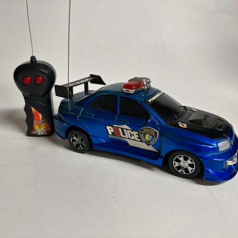 Radiostyrt bil med store, brede dekk og myke dekk. Fin bil å bruke innendørs.