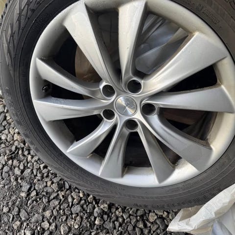 4 stk piggfrie dekk på felg selges. Fortsatt en del dekk igjen, se bilde.