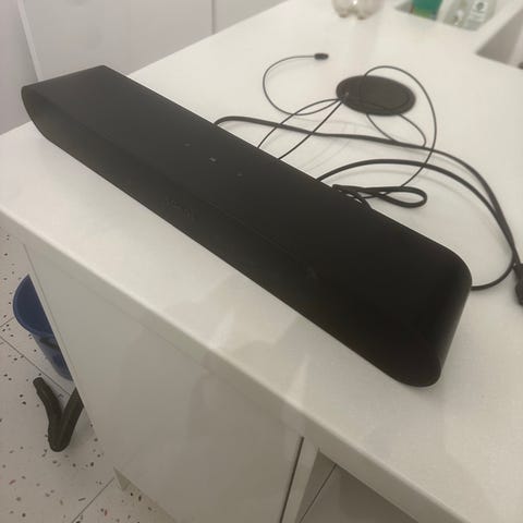 Sonos Ray lydplanke i sort farge. Lydplanken er pent brukt siden 2024 og selges fordi jeg har byttet til en større lydplanke fra Sonos. Inkluderer eske og tilhørende ledninger.