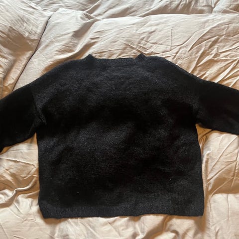 Arnie Says Avila cardigan i størrelse s, men tilsvarer M. Løs modell. Laget av mohairull, med en blanding av 55% mohair, 40% nylon og 5% spandex. Cardiganen har en grønn farge og en klassisk krage.