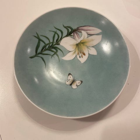 Rosenthal dekorasjonsfat oransje med fugl