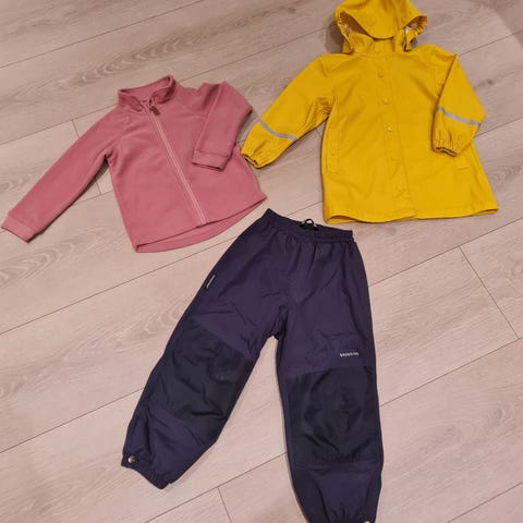 Regndress fra Reflex. Noe slitasje ved refleks og knapper, men helt vanntett.