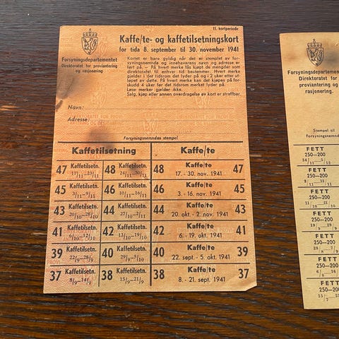 Historiske rasjoneringskort og kuponger Norge
