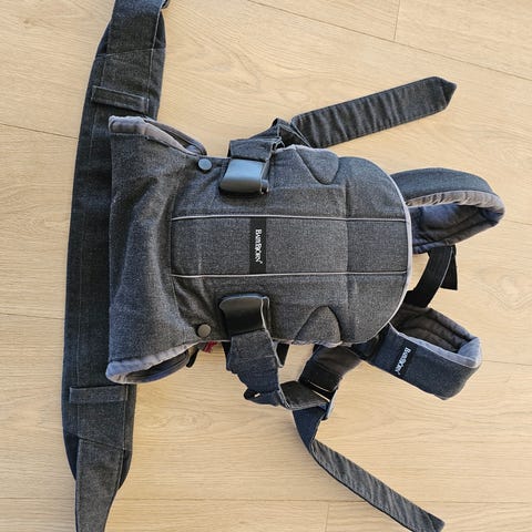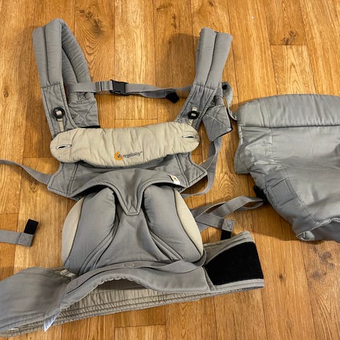 Ergobaby bæresele i blå farge. Designet for å bære babyer på en ergonomisk måte. Laget av slitesterkt materiale, egnet for både forside- og ryggbæring.