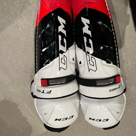 CCM Next 25/26 leggbeskyttere for ishockey, designet for juniorbrukere. Har normal passform og justerbare størrelser for tilpasning.