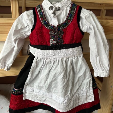 Selger ubrukt festdrakt til Jente. Skjorte, veske og henger følger med.